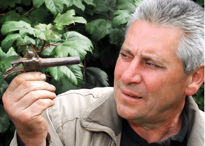 Project worker Mr Michael Kenehan examines the Pocket Percussion Cap Pistol found in Thurles, Graveyard.