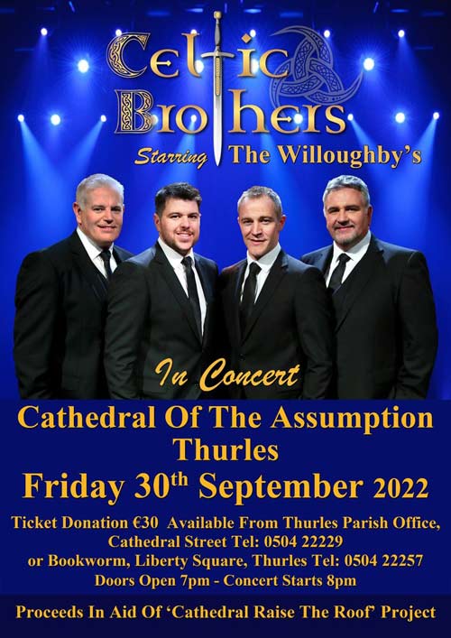 The Celtic Brothers are scheduled to appear in concert on Friday September 30th, 2022, in the Cathedral of the Assumption, Cathedral Street, Thurles, Co. Tipperary.