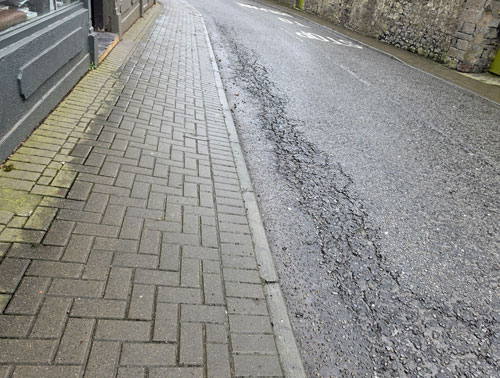 Parnell Street, Thurles beginning to sink and unravel with footpath now at a distinct sloaping angle. Picture: G. Willoughby.