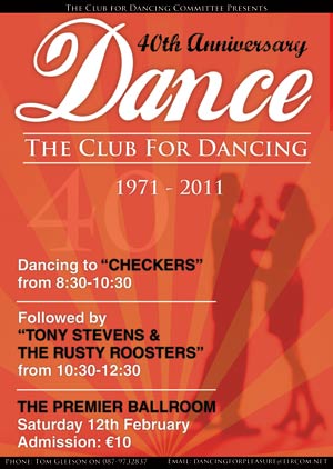 Our congratulations to the Club for Dancing here in Thurles who will celebrate their 40th Anniversary on Saturday February 12th next. The Club will mark the occasion with an event in their usual stomping ground, The Premier Ballroom in Thurles.