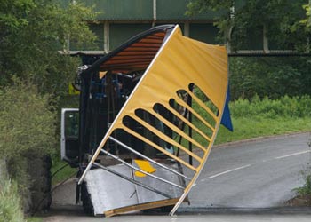 The lorry owned by Carey Glass International, latter based in Nenagh County Tipperary and Salford, Manchester, crashed just off Ffordd Penamser, one mile from Porthmadog at approximately 8.20am.