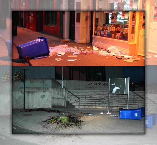 People shouting and screaming, urinating in doorways, the endless blasting of car horns, motorists racing up and down the streets or performing hand brake turns in Lidl car-park, the endless rubbish dumped from fast food outlets together with broken glasses and bottles dumped onto our streets or into private gardens, all now contributing to a new phenomenon and an observable fact, to those who love our town.
