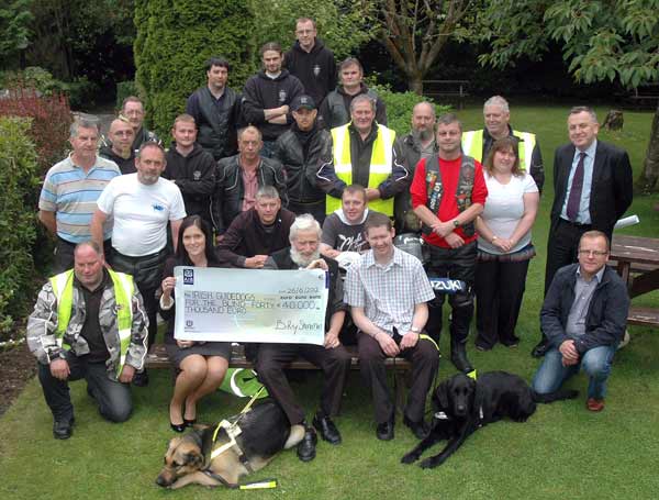 Sinead O’Keeffe, Commercial Manager, Irish Guide Dogs for the Blind (IGDB), travelled to Thurles on Tuesday evening last to accept a cheque on behalf of the organisation, for €40,000. Mr Billy Shanahan, Guide Dog owner and a team organiser presented the cheque on behalf of the Scottish Motorbike Challange 2012 team.
