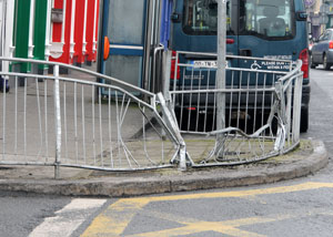 Pedestrian safety barriers at the junction of Slievenamon Road & Liberty Square Thurles were badly damaged in the early hours of this morning. The accident is believed to have been caused by an articulated vehicle having manoeuvred the corner at this junction, a little short of turning space.