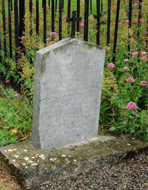 Leyne’s small limestone tombstone reads:- (Click on image left for greater for resolution.)