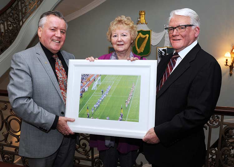 During a recent ‘Irish in Britain,’ event at the Irish Embassy, Seamus was presented with a picture by Gerry Molumby, latter taken by Gerry himself from the Hogan Stand at an All Ireland Final.