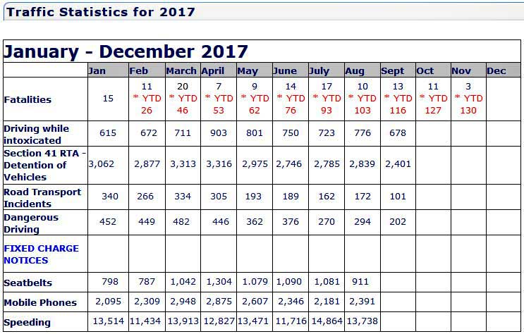 Let us take a look at An Garda Síochána’s Traffic Statistics hereunder for this year, 2017, to date.