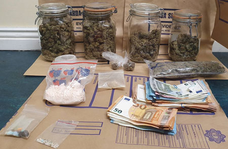 It was during the course of this search that Cannabis, MDMA, Amphetamine and Cocaine, together worth some €16,100, together with €5,400 in cash was seized.