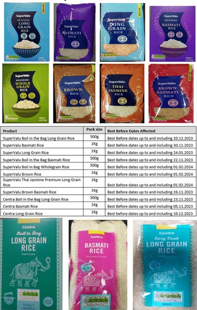 Yesterday, the FSAI have stated that SuperValu and Centra are both recalling batches of their rice products, with the Netherlands the country of origin.