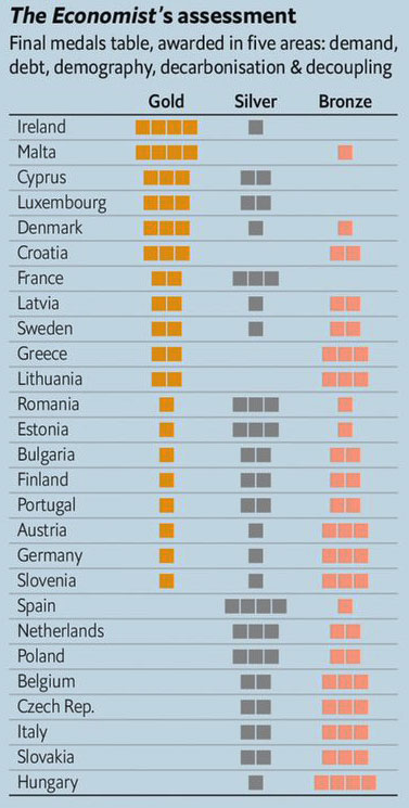According to ‘The Economist’, latter a British weekly newspaper printed in magazine format and published digitally; Ireland is winning the EU ‘economic pentathlon’.