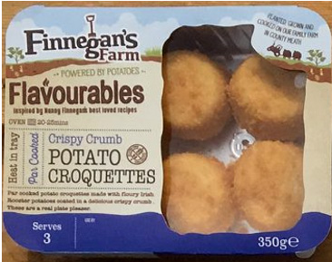 Product Identification: Finnegan’s Farm Potato Croquettes; pack size: 350g