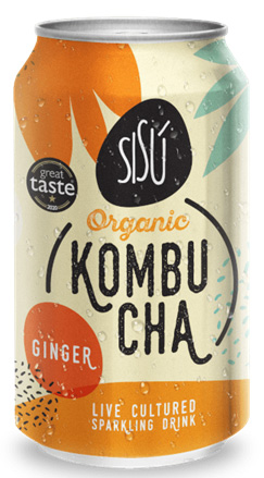 Product Identification: Sisú Ginger Flavoured Organic Kombucha; pack size: 330ml cans and 12x330ml case.