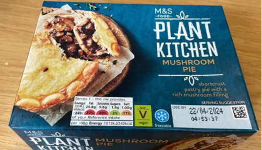 Product Identification: M&S Food Plant Kitchen Mushroom Pie; pack size: 200g.