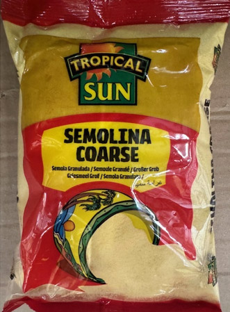 Product Identification: Tropical Sun Semolina Coarse; pack size: 1.5kg and 5kg