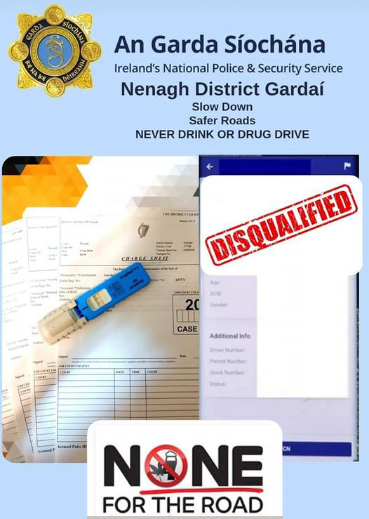Gardaí on patrol, in the Nenagh town area of North Co. Tipperary, observed and halted a motorist driving erratically over this weekend. The driver and vehicle posed a possible danger to other motorists.