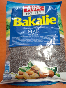Product Identification: Aga Holtex Bakalie Mak Niebieski (blue poppy seeds); pack size: 200g.