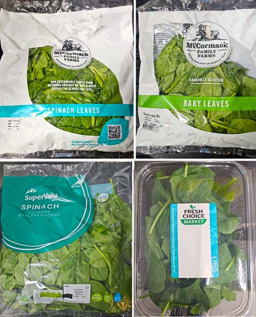 | McCormack Family Farms Spinach Leaves | 60g,100g,120g, 250g, 500g | 204,205,206,208 | 29/07/2024, 30/07/2024, 31/07/2024, 01/08/2024, 02/08/2024, 03/8/2024. |
