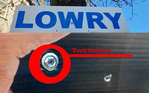 Both have used heavy duty self-drilling Tech screws, latter originally designed for drilling into sheet steel. Same were used to attach plastic posters to mature trees that were planted by members of Thurles Tidy Towns, way back in the 1990’s.