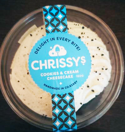 Product Identification: Chrissy’s Cookies & Cream Cheesecake.