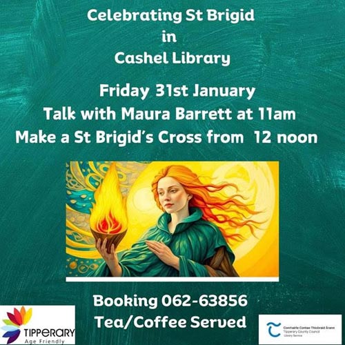 “Friends, I will be giving a talk on the customs of St Brigid, on Friday morning at 11:00am and afterwards we will have a go at reviving the lost art of making Brigid’s Crosses from 12:00 noon.