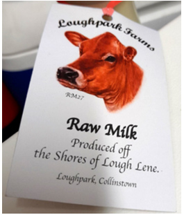 Product Identification: Loughpark Farm Raw Milk; pack size: 1 litre