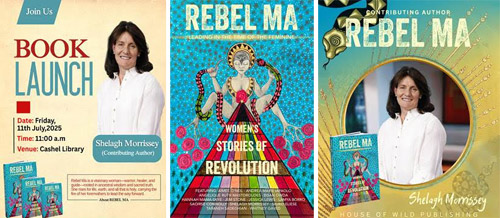An invitation to the book launch of ‘Rebel Ma’ in Cashel Library, with contributing local author Ms Shelagh Marshal.