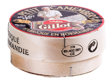 Product Identification: Gillot cru Petit Camembert; pack size: 150g.