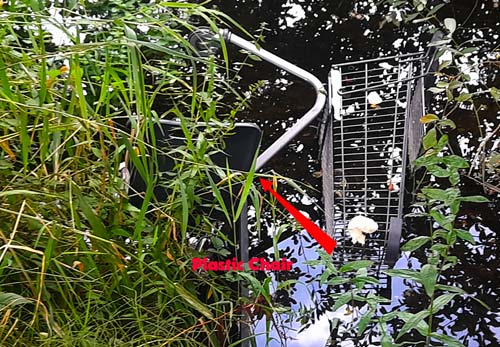 The smell of sewage is about the same. Two more Supermarket Trolleys and one plastic chair have been added to the now stagnant waterway. (See picture shown hereunder).