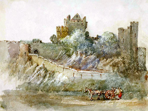 When the Anglo-Normans came first to Ireland, Knockgraffon, and not Cahir, was the principal place in the Barony, which passed, about 1215, to one of Henry II’s knights, Philip of Worcester. From him it passed to his nephew, William, whose great-granddaughter brought it to the de Berminghams by her marriage with Milo de Bermingham. In 1332 the Barony reverted to the Crown on William de Bermingham’s attainder. But the English King was little bettered by Cahir. As has been said already, Bryan O’Brien and his Irish had by 1332 overrun and re-conquered Tipperary.