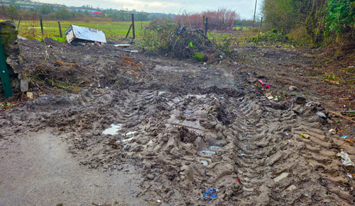 And so the Double Ditch, the real one, survives mostly as an idea: something that mattered, that was walkable, that carried memory in its stones. What’s left on the ground is the modern tribute: tarmac, blocked drains, weeds, rubbish, bent fencing, and the quiet certainty that nobody, supposedly in authority, will be held to account for any of it.