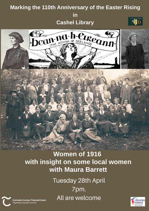 Cashel Library, Co. Tipperary will host a special commemorative lecture marking the 110th anniversary of the 1916 Easter Rising on Tuesday, 28th April 2026 at 7:00pm sharp.