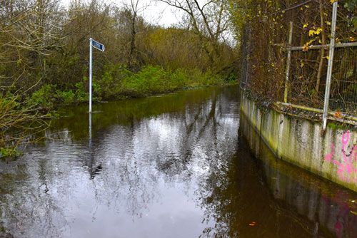Unserviceable river walkway at rear of Thurles Shopping Centre and Lidl due to severe flooding. Pic: G. Willoughby.