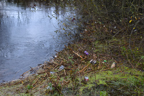 Trees permitted to grow in the riverbed catch floating cans, bottles and other debris, making the area unsightly. Pic: G. Willoughby.