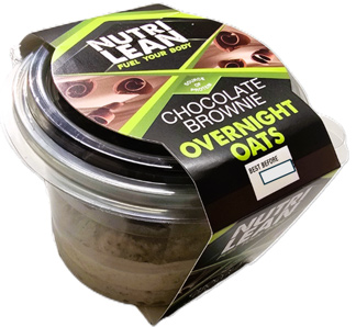 Product Identification: Nutrilean Chocolate Brownie Overnight Oats; pack size: 180g.