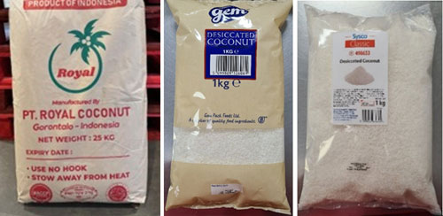 Recall of specific batches of several brands of Desiccated Coconut due to the possible presence of pieces of plastic.