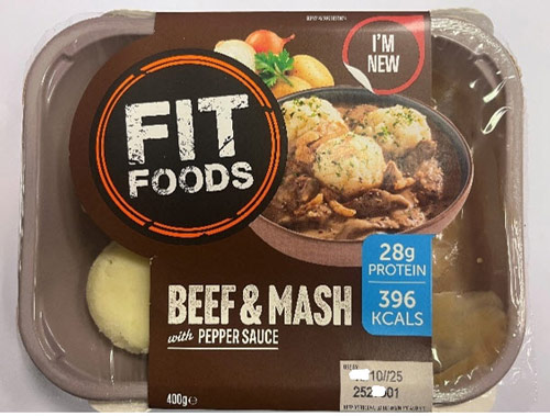 Message: The above batch of Fit Foods Beef & Mash with Pepper Sauce contains sesame, soya and celery which are not declared in the list of ingredients. This may make the batch unsafe for consumers who are allergic to or intolerant of sesame, soya and / or celery and therefore, these consumers should not eat the implicated batch. The affected batch is being recalled.