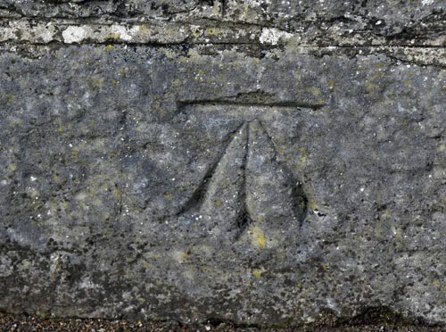 These chiselled symbols, usually a simple crow’s foot cut beneath a horizontal line (view image above), once formed part of a vast system for measuring height above sea level. Known colloquially as “sappers’ marks,” the upward-pointing arrow same contain, was borrowed from the British Government’s ‘broad arrow’ emblem of ownership, repurposed by surveyors as a practical, durable and instantly recognisable tool. At one point the British government issued prison clothing which were stamped with this ‘broad arrow’ emblem, so that people in the towns and villages would know that these individuals were convicts.