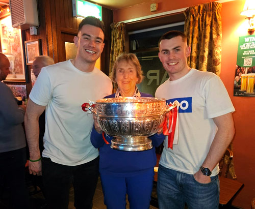 As Rhys progressed from the Under 8’s into the various under age team groups his mother Mary volunteered to do many of the most essential duties in the Juvenile club. Currently the club’s Senior ‘Runaí’, Mary, is Bord Na -Óg secretary, photographer, PRO etc. etc. and her family have not only provided invaluable support to Rhys, but to a whole generation of boys and girls in the parish. Mary’s mother Margaret (RIP) died a few days before the game against Clare and in the early spring Mary herself was hospitalised with a stroke from which she has thankfully gradually recovered.