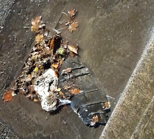 Blocked Thurles drains due to litter and fallen leaves. Pic: G. Willoughby.